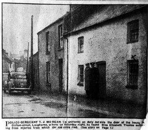 On the 11th January 1953 she bought some sweets from Clifton Stores opposite the house (see above), and shortly afterwards she was murdered in the hallway of her home, at 3 Clifton St, aged 78. The supposition was that the murderer was robbing her of her savings, and later £200 was found under the mattress. The villain went through the back door, down the garden, through the river and escaped over the fields. The pic below is of the policeman, Police-Sergeant T.J. Morgan who discovered Ms Thomas' body.