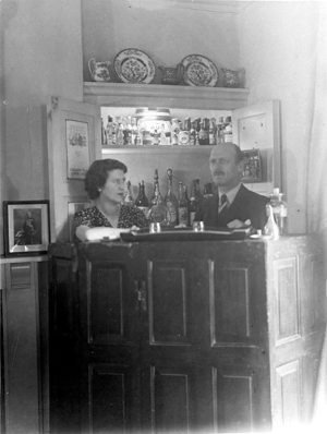 Miss Anna Lewis was born in the house in 1911 and in the above pic, Miss Lewis and a 'gentleman friend' (she never married) stand behind a bar in the drawing room of the house in a wonderfully evocative pic from the early 1940s. Miss Lewis' parents lived at Ant's Hill. Charles Lewis was a retired farmer from Llanboidy who died in the house 1920, and his wife, Agnes was a music teacher from Llandeilo who died in 1940.