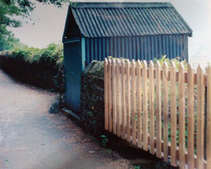 The boundary wall collapsed in 1983 taking the old gate, stepped pathway and a bike shed with it. The ruined gate is now in the possession of artist John Uzzell Edwards (below), who happened to be with the actor Michael Sheen when they found it in a skip.