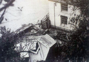The pics below show the bike shed above the house, a close-up and the shed wrecked in the garden down below. It's a good job Dylan didn't use this as his writing shed.