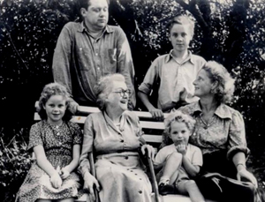 The pic above is of Dylan, Caitlin, their children Llywelyn (standing), Aeronwy and Colm, and Dylan's mother Florrie in the Boathouse garden.