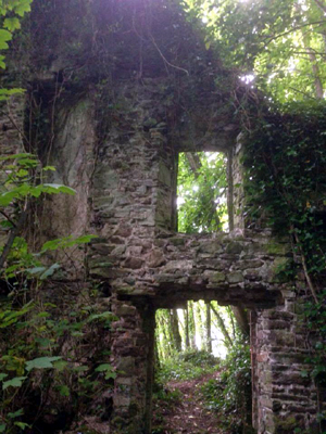 'Burnt House' is a ghostly ruin down below the cliff path a few hundred yards north, past the Boathouse, and the Glan y Mor slipway.