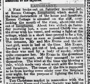 Ann Thomas (74, from Haverfordwest) along with 16-year old Jane Jenkins, a domestic from St Clears. A spark from the fireplace landed on some dry sticks