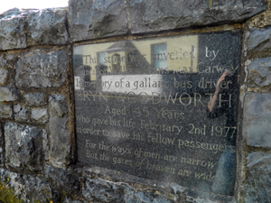 In 1977 Bryn Woodworth, a Pioneer bus driver from Laugharne tragically lost his life in Pendine when his bus lost control on a steep hill and crashed into the sea wall. His heroism meant all but one of the passengers survived. A memorial plaque commemorating his bravery can be seen above, on the sea wall at Pendine.
