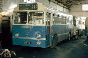 and Pioneer buses moved in. Browns was decorated inside and out to match Pioneer's livery - blue and cream.