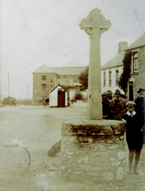 This pic above is of the cross in the 1920s, and you can see the Cockle Factory and the Weighbridge shed in the background. To this day coffins are carried three times around it on the way to the 'upstreet' graveyards, following the monks' tradition.