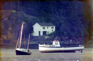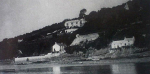 People wanting to cross would ring the bell at Bell Cottage (now gone) opposite. If the tide was out the ferryman would give you a piggy-back across the sticky muddy slopes. In the pic below you can see the Ferry House, the Boathouse and the original Cliff House.