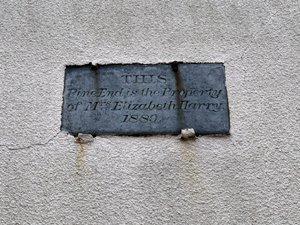 The last house on the right as you walk towards the harbour has a wall plaque stating, 'Pine End belonging to Mrs Elizabeth Garry 1899'.