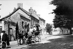 In this 1920s picture the cottage building behind the cart houses the Post Office today. Next to it is Gaisford House,