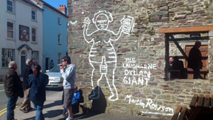 of the Cerne Abbas Giant on the smoking area wall during the Laugharne Weekend. On the Monday following the Laugharne Weekend, Ronnie Roderick,