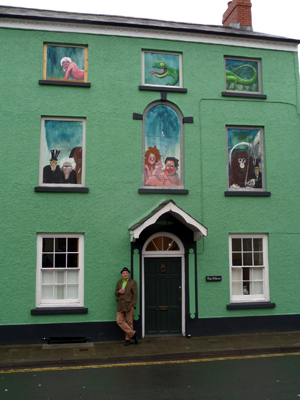 the Pelican windows. The images depict David Icke (who rudely failed to turn up at the Laugharne Weekend and didn't tell anyone),