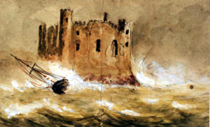 shore on Laugharne Sands, Caldy Island. At 8pm, on the 8th, the ship filled with water, a few minutes after striking. We got the boat ready