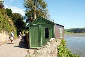 The hut affords spectacular views of Sir John's Hill, the Llanstephan peninsula (his mother's homeland), the sands of Cefn Sidan, Ginst Point and Gower beyond,